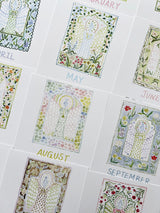 The angel desk calendar features a double sided pages. On the back of each calendar page, you'll find full sized art with a bible verse.