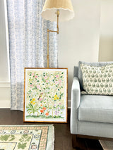 This work is part of the Chinoiserie Flowers series, which aims to redefine classic Chinoiserie panels with fresh new florals and exciting color palettes. In painting the art, EH studied classic Chinoiserie compositions, sketched them, and infused them with bright, happy, and whimsical elements as she painted her own versions. The artist hopes these embody the same classic, timeless feel of traditional Chinoiserie, but also filled with a joy that radiates off the page and fills your home with sunshine.