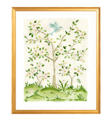 This work is part of the Chinoiserie Flowers series, which aims to redefine classic Chinoiserie panels with fresh new florals and exciting color palettes. In painting the art, EH studied classic Chinoiserie compositions, sketched them, and infused them with bright, happy, and whimsical elements as she painted her own versions. The artist hopes these embody the same classic, timeless feel of traditional Chinoiserie, but also filled with a joy that radiates off the page and fills your home with sunshine.
