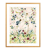This work is part of the Chinoiserie Flowers series, which aims to redefine classic Chinoiserie panels with fresh new florals and exciting color palettes. In painting the art, EH studied classic Chinoiserie compositions, sketched them, and infused them with bright, happy, and whimsical elements as she painted her own versions. The artist hopes these embody the same classic, timeless feel of traditional Chinoiserie, but also filled with a joy that radiates off the page and fills your home with sunshine.