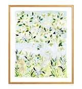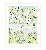 This work is part of the Chinoiserie animal series, which aims to redefine classic Chinoiserie panels with fresh new florals and exciting color palettes. In painting the art, EH studied classic Chinoiserie compositions, sketched them, and infused them with bright, happy, and whimsical elements as she painted her own versions. The artist hopes these embody the same classic, timeless feel of traditional Chinoiserie, but also filled with a joy that radiates off the page and fills your home with sunshine.