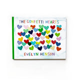 Written and illustrated by Evelyn, this book shares the confetti hearts wall's lessons about kindness. Meant for all ages, the story whimsically illustrates how small acts of kindness slowly add up into something as beautiful as the confetti hearts wall.