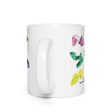 This stylish mug will remind you to keep your head, heels, standards, and coffee cups filled high! Illustrated by artist Evelyn Henson, this fashionable design wraps all the way around the mug. The 11oz ceramic mug is dishwasher and microwave safe.