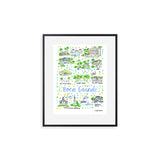 Elevate your wall decor with Evelyn Henson's whimsical watercolor map series, a vibrant collection boasting 250+ places and counting. Each print is a celebration of cherished locations, adorned with unique icons and landmarks that capture the essence of the place. Professionally printed in the USA, these prints mirror the original watercolor's charm, adding a burst of color and joy to your space. Choose a single print to commemorate a beloved locale and relive cherished memories, or create a gallery by displaying multiple prints to weave a visual narrative of your journeys. Transform your walls into a personalized showcase of meaningful places with these professionally crafted watercolor city map prints.