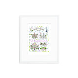 Elevate your wall decor with Evelyn Henson's whimsical watercolor map series, a vibrant collection boasting 250+ places and counting. Each print is a celebration of cherished locations, adorned with unique icons and landmarks that capture the essence of the place. Professionally printed in the USA, these prints mirror the original watercolor's charm, adding a burst of color and joy to your space. Choose a single print to commemorate a beloved locale and relive cherished memories, or create a gallery by displaying multiple prints to weave a visual narrative of your journeys. Transform your walls into a personalized showcase of meaningful places with these professionally crafted watercolor city map prints.