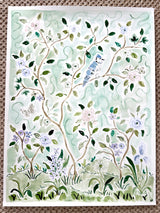 Inspired by classic Chinoiserie compositions and modern color palettes, Evelyn completed this original, one of a kind mixed media work with gouache and watercolor on rag paper. By adding whimsical, bright details, Evelyn hopes the works fill your home with timelessness and sunshine.