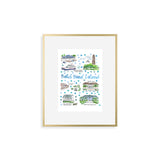 Elevate your wall decor with Evelyn Henson's whimsical watercolor map series, a vibrant collection boasting 250+ places and counting. Each print is a celebration of cherished locations, adorned with unique icons and landmarks that capture the essence of the place. Professionally printed in the USA, these prints mirror the original watercolor's charm, adding a burst of color and joy to your space. Choose a single print to commemorate a beloved locale and relive cherished memories, or create a gallery by displaying multiple prints to weave a visual narrative of your journeys. Transform your walls into a personalized showcase of meaningful places with these professionally crafted watercolor city map prints.