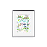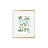 Elevate your wall decor with Evelyn Henson's whimsical watercolor map series, a vibrant collection boasting 250+ places and counting. Each print is a celebration of cherished locations, adorned with unique icons and landmarks that capture the essence of the place. Professionally printed in the USA, these prints mirror the original watercolor's charm, adding a burst of color and joy to your space. Choose a single print to commemorate a beloved locale and relive cherished memories, or create a gallery by displaying multiple prints to weave a visual narrative of your journeys. Transform your walls into a personalized showcase of meaningful places with these professionally crafted watercolor city map prints.