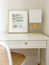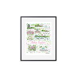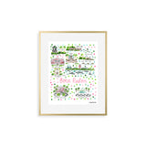 Elevate your wall decor with Evelyn Henson's whimsical watercolor map series, a vibrant collection boasting 250+ places and counting. Each print is a celebration of cherished locations, adorned with unique icons and landmarks that capture the essence of the place. Professionally printed in the USA, these prints mirror the original watercolor's charm, adding a burst of color and joy to your space. Choose a single print to commemorate a beloved locale and relive cherished memories, or create a gallery by displaying multiple prints to weave a visual narrative of your journeys. Transform your walls into a personalized showcase of meaningful places with these professionally crafted watercolor city map prints.