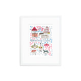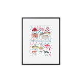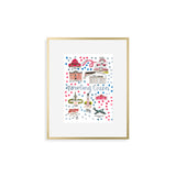 Elevate your wall decor with Evelyn Henson's whimsical watercolor map series, a vibrant collection boasting 250+ places and counting. Each print is a celebration of cherished locations, adorned with unique icons and landmarks that capture the essence of the place. Professionally printed in the USA, these prints mirror the original watercolor's charm, adding a burst of color and joy to your space. Choose a single print to commemorate a beloved locale and relive cherished memories, or create a gallery by displaying multiple prints to weave a visual narrative of your journeys. Transform your walls into a personalized showcase of meaningful places with these professionally crafted watercolor city map prints.