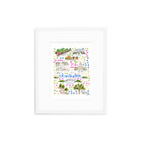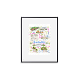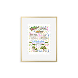 Elevate your wall decor with Evelyn Henson's whimsical watercolor map series, a vibrant collection boasting 250+ places and counting. Each print is a celebration of cherished locations, adorned with unique icons and landmarks that capture the essence of the place. Professionally printed in the USA, these prints mirror the original watercolor's charm, adding a burst of color and joy to your space. Choose a single print to commemorate a beloved locale and relive cherished memories, or create a gallery by displaying multiple prints to weave a visual narrative of your journeys. Transform your walls into a personalized showcase of meaningful places with these professionally crafted watercolor city map prints.