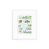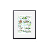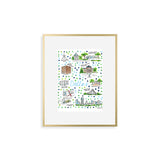 Elevate your wall decor with Evelyn Henson's whimsical watercolor map series, a vibrant collection boasting 250+ places and counting. Each print is a celebration of cherished locations, adorned with unique icons and landmarks that capture the essence of the place. Professionally printed in the USA, these prints mirror the original watercolor's charm, adding a burst of color and joy to your space. Choose a single print to commemorate a beloved locale and relive cherished memories, or create a gallery by displaying multiple prints to weave a visual narrative of your journeys. Transform your walls into a personalized showcase of meaningful places with these professionally crafted watercolor city map prints.