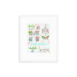 Elevate your wall decor with Evelyn Henson's whimsical watercolor map series, a vibrant collection boasting 250+ places and counting. Each print is a celebration of cherished locations, adorned with unique icons and landmarks that capture the essence of the place. Professionally printed in the USA, these prints mirror the original watercolor's charm, adding a burst of color and joy to your space. Choose a single print to commemorate a beloved locale and relive cherished memories, or create a gallery by displaying multiple prints to weave a visual narrative of your journeys. Transform your walls into a personalized showcase of meaningful places with these professionally crafted watercolor city map prints.