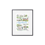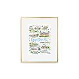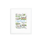 Elevate your wall decor with Evelyn Henson's whimsical watercolor map series, a vibrant collection boasting 250+ places and counting. Each print is a celebration of cherished locations, adorned with unique icons and landmarks that capture the essence of the place. Professionally printed in the USA, these prints mirror the original watercolor's charm, adding a burst of color and joy to your space. Choose a single print to commemorate a beloved locale and relive cherished memories, or create a gallery by displaying multiple prints to weave a visual narrative of your journeys. Transform your walls into a personalized showcase of meaningful places with these professionally crafted watercolor city map prints.