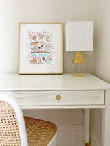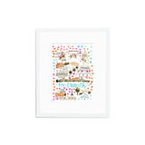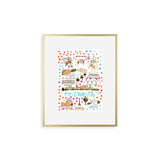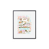 Elevate your wall decor with Evelyn Henson's whimsical watercolor map series, a vibrant collection boasting 250+ places and counting. Each print is a celebration of cherished locations, adorned with unique icons and landmarks that capture the essence of the place. Professionally printed in the USA, these prints mirror the original watercolor's charm, adding a burst of color and joy to your space. Choose a single print to commemorate a beloved locale and relive cherished memories, or create a gallery by displaying multiple prints to weave a visual narrative of your journeys. Transform your walls into a personalized showcase of meaningful places with these professionally crafted watercolor city map prints.