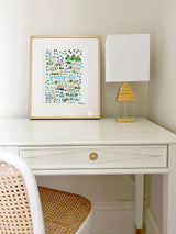 Elevate your wall decor with Evelyn Henson's whimsical watercolor map series, a vibrant collection boasting 250+ places and counting. Each print is a celebration of cherished locations, adorned with unique icons and landmarks that capture the essence of the place. Professionally printed in the USA, these prints mirror the original watercolor's charm, adding a burst of color and joy to your space. Choose a single print to commemorate a beloved locale and relive cherished memories, or create a gallery by displaying multiple prints to weave a visual narrative of your journeys. Transform your walls into a personalized showcase of meaningful places with these professionally crafted watercolor city map prints.