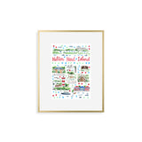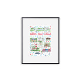 Elevate your wall decor with Evelyn Henson's whimsical watercolor map series, a vibrant collection boasting 250+ places and counting. Each print is a celebration of cherished locations, adorned with unique icons and landmarks that capture the essence of the place. Professionally printed in the USA, these prints mirror the original watercolor's charm, adding a burst of color and joy to your space. Choose a single print to commemorate a beloved locale and relive cherished memories, or create a gallery by displaying multiple prints to weave a visual narrative of your journeys. Transform your walls into a personalized showcase of meaningful places with these professionally crafted watercolor city map prints.