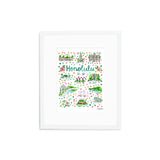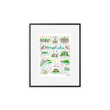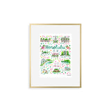 Elevate your wall decor with Evelyn Henson's whimsical watercolor map series, a vibrant collection boasting 250+ places and counting. Each print is a celebration of cherished locations, adorned with unique icons and landmarks that capture the essence of the place. Professionally printed in the USA, these prints mirror the original watercolor's charm, adding a burst of color and joy to your space. Choose a single print to commemorate a beloved locale and relive cherished memories, or create a gallery by displaying multiple prints to weave a visual narrative of your journeys. Transform your walls into a personalized showcase of meaningful places with these professionally crafted watercolor city map prints.