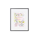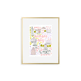 Elevate your wall decor with Evelyn Henson's whimsical watercolor map series, a vibrant collection boasting 250+ places and counting. Each print is a celebration of cherished locations, adorned with unique icons and landmarks that capture the essence of the place. Professionally printed in the USA, these prints mirror the original watercolor's charm, adding a burst of color and joy to your space. Choose a single print to commemorate a beloved locale and relive cherished memories, or create a gallery by displaying multiple prints to weave a visual narrative of your journeys. Transform your walls into a personalized showcase of meaningful places with these professionally crafted watercolor city map prints.