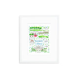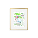 Elevate your wall decor with Evelyn Henson's whimsical watercolor map series, a vibrant collection boasting 250+ places and counting. Each print is a celebration of cherished locations, adorned with unique icons and landmarks that capture the essence of the place. Professionally printed in the USA, these prints mirror the original watercolor's charm, adding a burst of color and joy to your space. Choose a single print to commemorate a beloved locale and relive cherished memories, or create a gallery by displaying multiple prints to weave a visual narrative of your journeys. Transform your walls into a personalized showcase of meaningful places with these professionally crafted watercolor city map prints.