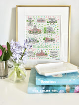 Elevate your wall decor with Evelyn Henson's whimsical watercolor map series, a vibrant collection boasting 250+ places and counting. Each print is a celebration of cherished locations, adorned with unique icons and landmarks that capture the essence of the place. Professionally printed in the USA, these prints mirror the original watercolor's charm, adding a burst of color and joy to your space. Choose a single print to commemorate a beloved locale and relive cherished memories, or create a gallery by displaying multiple prints to weave a visual narrative of your journeys. Transform your walls into a personalized showcase of meaningful places with these professionally crafted watercolor city map prints.
