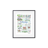 Elevate your wall decor with Evelyn Henson's whimsical watercolor map series, a vibrant collection boasting 250+ places and counting. Each print is a celebration of cherished locations, adorned with unique icons and landmarks that capture the essence of the place. Professionally printed in the USA, these prints mirror the original watercolor's charm, adding a burst of color and joy to your space. Choose a single print to commemorate a beloved locale and relive cherished memories, or create a gallery by displaying multiple prints to weave a visual narrative of your journeys. Transform your walls into a personalized showcase of meaningful places with these professionally crafted watercolor city map prints.