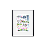 Elevate your wall decor with Evelyn Henson's whimsical watercolor map series, a vibrant collection boasting 250+ places and counting. Each print is a celebration of cherished locations, adorned with unique icons and landmarks that capture the essence of the place. Professionally printed in the USA, these prints mirror the original watercolor's charm, adding a burst of color and joy to your space. Choose a single print to commemorate a beloved locale and relive cherished memories, or create a gallery by displaying multiple prints to weave a visual narrative of your journeys. Transform your walls into a personalized showcase of meaningful places with these professionally crafted watercolor city map prints.