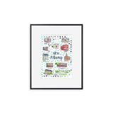 Elevate your wall decor with Evelyn Henson's whimsical watercolor map series, a vibrant collection boasting 250+ places and counting. Each print is a celebration of cherished locations, adorned with unique icons and landmarks that capture the essence of the place. Professionally printed in the USA, these prints mirror the original watercolor's charm, adding a burst of color and joy to your space. Choose a single print to commemorate a beloved locale and relive cherished memories, or create a gallery by displaying multiple prints to weave a visual narrative of your journeys. Transform your walls into a personalized showcase of meaningful places with these professionally crafted watercolor city map prints.