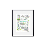 Elevate your wall decor with Evelyn Henson's whimsical watercolor map series, a vibrant collection boasting 250+ places and counting. Each print is a celebration of cherished locations, adorned with unique icons and landmarks that capture the essence of the place. Professionally printed in the USA, these prints mirror the original watercolor's charm, adding a burst of color and joy to your space. Choose a single print to commemorate a beloved locale and relive cherished memories, or create a gallery by displaying multiple prints to weave a visual narrative of your journeys. Transform your walls into a personalized showcase of meaningful places with these professionally crafted watercolor city map prints.