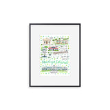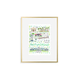 Elevate your wall decor with Evelyn Henson's whimsical watercolor map series, a vibrant collection boasting 250+ places and counting. Each print is a celebration of cherished locations, adorned with unique icons and landmarks that capture the essence of the place. Professionally printed in the USA, these prints mirror the original watercolor's charm, adding a burst of color and joy to your space. Choose a single print to commemorate a beloved locale and relive cherished memories, or create a gallery by displaying multiple prints to weave a visual narrative of your journeys. Transform your walls into a personalized showcase of meaningful places with these professionally crafted watercolor city map prints.