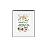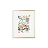 Elevate your wall decor with Evelyn Henson's whimsical watercolor map series, a vibrant collection boasting 250+ places and counting. Each print is a celebration of cherished locations, adorned with unique icons and landmarks that capture the essence of the place. Professionally printed in the USA, these prints mirror the original watercolor's charm, adding a burst of color and joy to your space. Choose a single print to commemorate a beloved locale and relive cherished memories, or create a gallery by displaying multiple prints to weave a visual narrative of your journeys. Transform your walls into a personalized showcase of meaningful places with these professionally crafted watercolor city map prints.
