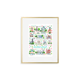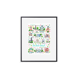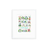 Elevate your wall decor with Evelyn Henson's whimsical watercolor map series, a vibrant collection boasting 250+ places and counting. Each print is a celebration of cherished locations, adorned with unique icons and landmarks that capture the essence of the place. Professionally printed in the USA, these prints mirror the original watercolor's charm, adding a burst of color and joy to your space. Choose a single print to commemorate a beloved locale and relive cherished memories, or create a gallery by displaying multiple prints to weave a visual narrative of your journeys. Transform your walls into a personalized showcase of meaningful places with these professionally crafted watercolor city map prints.