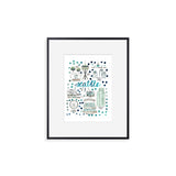 Elevate your wall decor with Evelyn Henson's whimsical watercolor map series, a vibrant collection boasting 250+ places and counting. Each print is a celebration of cherished locations, adorned with unique icons and landmarks that capture the essence of the place. Professionally printed in the USA, these prints mirror the original watercolor's charm, adding a burst of color and joy to your space. Choose a single print to commemorate a beloved locale and relive cherished memories, or create a gallery by displaying multiple prints to weave a visual narrative of your journeys. Transform your walls into a personalized showcase of meaningful places with these professionally crafted watercolor city map prints.