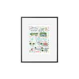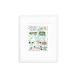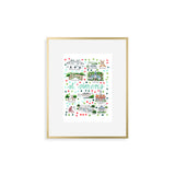 Elevate your wall decor with Evelyn Henson's whimsical watercolor map series, a vibrant collection boasting 250+ places and counting. Each print is a celebration of cherished locations, adorned with unique icons and landmarks that capture the essence of the place. Professionally printed in the USA, these prints mirror the original watercolor's charm, adding a burst of color and joy to your space. Choose a single print to commemorate a beloved locale and relive cherished memories, or create a gallery by displaying multiple prints to weave a visual narrative of your journeys. Transform your walls into a personalized showcase of meaningful places with these professionally crafted watercolor city map prints.