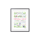 Elevate your wall decor with Evelyn Henson's whimsical watercolor map series, a vibrant collection boasting 250+ places and counting. Each print is a celebration of cherished locations, adorned with unique icons and landmarks that capture the essence of the place. Professionally printed in the USA, these prints mirror the original watercolor's charm, adding a burst of color and joy to your space. Choose a single print to commemorate a beloved locale and relive cherished memories, or create a gallery by displaying multiple prints to weave a visual narrative of your journeys. Transform your walls into a personalized showcase of meaningful places with these professionally crafted watercolor city map prints.