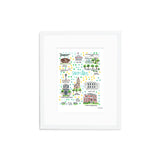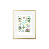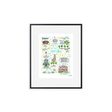 Elevate your wall decor with Evelyn Henson's whimsical watercolor map series, a vibrant collection boasting 250+ places and counting. Each print is a celebration of cherished locations, adorned with unique icons and landmarks that capture the essence of the place. Professionally printed in the USA, these prints mirror the original watercolor's charm, adding a burst of color and joy to your space. Choose a single print to commemorate a beloved locale and relive cherished memories, or create a gallery by displaying multiple prints to weave a visual narrative of your journeys. Transform your walls into a personalized showcase of meaningful places with these professionally crafted watercolor city map prints.