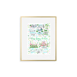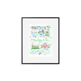 Elevate your wall decor with Evelyn Henson's whimsical watercolor map series, a vibrant collection boasting 250+ places and counting. Each print is a celebration of cherished locations, adorned with unique icons and landmarks that capture the essence of the place. Professionally printed in the USA, these prints mirror the original watercolor's charm, adding a burst of color and joy to your space. Choose a single print to commemorate a beloved locale and relive cherished memories, or create a gallery by displaying multiple prints to weave a visual narrative of your journeys. Transform your walls into a personalized showcase of meaningful places with these professionally crafted watercolor city map prints.