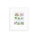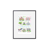 Elevate your wall decor with Evelyn Henson's whimsical watercolor map series, a vibrant collection boasting 250+ places and counting. Each print is a celebration of cherished locations, adorned with unique icons and landmarks that capture the essence of the place. Professionally printed in the USA, these prints mirror the original watercolor's charm, adding a burst of color and joy to your space. Choose a single print to commemorate a beloved locale and relive cherished memories, or create a gallery by displaying multiple prints to weave a visual narrative of your journeys. Transform your walls into a personalized showcase of meaningful places with these professionally crafted watercolor city map prints.