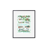 Elevate your wall decor with Evelyn Henson's whimsical watercolor map series, a vibrant collection boasting 250+ places and counting. Each print is a celebration of cherished locations, adorned with unique icons and landmarks that capture the essence of the place. Professionally printed in the USA, these prints mirror the original watercolor's charm, adding a burst of color and joy to your space. Choose a single print to commemorate a beloved locale and relive cherished memories, or create a gallery by displaying multiple prints to weave a visual narrative of your journeys. Transform your walls into a personalized showcase of meaningful places with these professionally crafted watercolor city map prints.