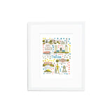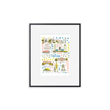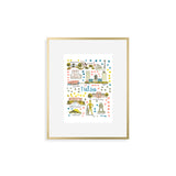 Elevate your wall decor with Evelyn Henson's whimsical watercolor map series, a vibrant collection boasting 250+ places and counting. Each print is a celebration of cherished locations, adorned with unique icons and landmarks that capture the essence of the place. Professionally printed in the USA, these prints mirror the original watercolor's charm, adding a burst of color and joy to your space. Choose a single print to commemorate a beloved locale and relive cherished memories, or create a gallery by displaying multiple prints to weave a visual narrative of your journeys. Transform your walls into a personalized showcase of meaningful places with these professionally crafted watercolor city map prints.