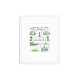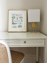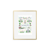 Elevate your wall decor with Evelyn Henson's whimsical watercolor map series, a vibrant collection boasting 250+ places and counting. Each print is a celebration of cherished locations, adorned with unique icons and landmarks that capture the essence of the place. Professionally printed in the USA, these prints mirror the original watercolor's charm, adding a burst of color and joy to your space. Choose a single print to commemorate a beloved locale and relive cherished memories, or create a gallery by displaying multiple prints to weave a visual narrative of your journeys. Transform your walls into a personalized showcase of meaningful places with these professionally crafted watercolor city map prints.