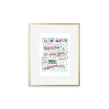 Elevate your wall decor with Evelyn Henson's whimsical watercolor map series, a vibrant collection boasting 250+ places and counting. Each print is a celebration of cherished locations, adorned with unique icons and landmarks that capture the essence of the place. Professionally printed in the USA, these prints mirror the original watercolor's charm, adding a burst of color and joy to your space. Choose a single print to commemorate a beloved locale and relive cherished memories, or create a gallery by displaying multiple prints to weave a visual narrative of your journeys. Transform your walls into a personalized showcase of meaningful places with these professionally crafted watercolor city map prints.