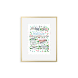 Elevate your wall decor with Evelyn Henson's whimsical watercolor map series, a vibrant collection boasting 250+ places and counting. Each print is a celebration of cherished locations, adorned with unique icons and landmarks that capture the essence of the place. Professionally printed in the USA, these prints mirror the original watercolor's charm, adding a burst of color and joy to your space. Choose a single print to commemorate a beloved locale and relive cherished memories, or create a gallery by displaying multiple prints to weave a visual narrative of your journeys. Transform your walls into a personalized showcase of meaningful places with these professionally crafted watercolor city map prints.