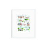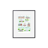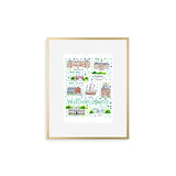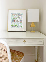 Elevate your wall decor with Evelyn Henson's whimsical watercolor map series, a vibrant collection boasting 250+ places and counting. Each print is a celebration of cherished locations, adorned with unique icons and landmarks that capture the essence of the place. Professionally printed in the USA, these prints mirror the original watercolor's charm, adding a burst of color and joy to your space. Choose a single print to commemorate a beloved locale and relive cherished memories, or create a gallery by displaying multiple prints to weave a visual narrative of your journeys. Transform your walls into a personalized showcase of meaningful places with these professionally crafted watercolor city map prints.