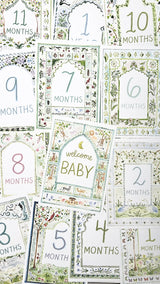 Capture moments big and small with this sweet, whimsically illustrated baby milestone set. Photograph the baby with each card and write a little note on the back to mark each moment. Each card set comes with white envelopes so these can be preserved as a lifelong keepsake.