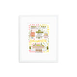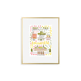 Elevate your wall decor with Evelyn Henson's whimsical watercolor map series, a vibrant collection boasting 250+ places and counting. Each print is a celebration of cherished locations, adorned with unique icons and landmarks that capture the essence of the place. Professionally printed in the USA, these prints mirror the original watercolor's charm, adding a burst of color and joy to your space. Choose a single print to commemorate a beloved locale and relive cherished memories, or create a gallery by displaying multiple prints to weave a visual narrative of your journeys. Transform your walls into a personalized showcase of meaningful places with these professionally crafted watercolor city map prints.